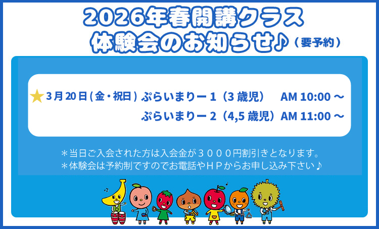 - ※ぷらいまりー1は「グループのみ」を推奨としますが、個人レッスンの回数はご希望に応じてお選びいただけます。入会後、途中で回数を変更することも可能です。