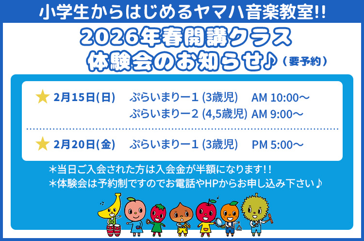- ●レッスン時間:グループ 50分/個人 20分